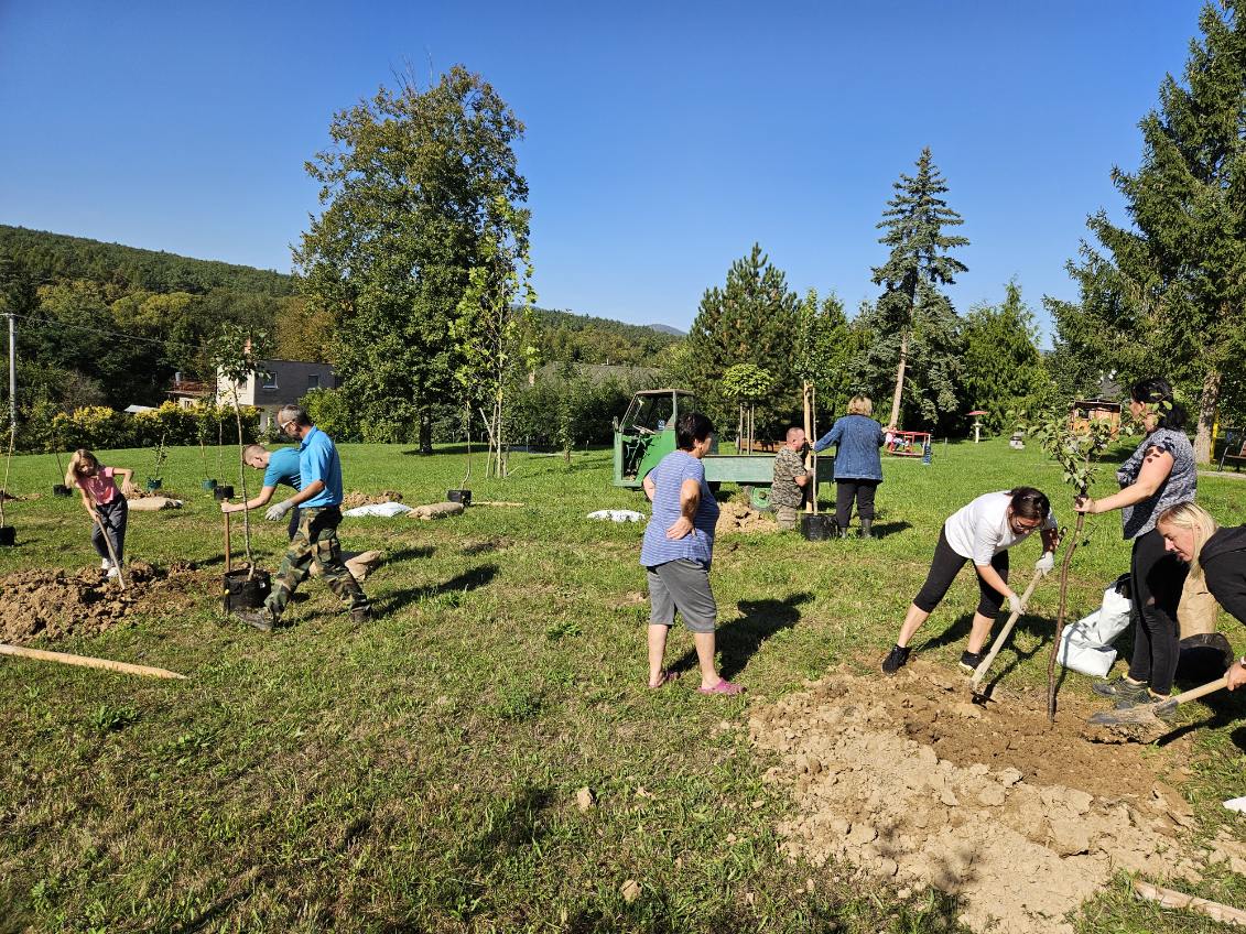 Vysádzanie ovocného sadu v blízkosti kultúrneho domu.